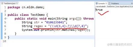 输出为trun,若是str=“ab”,输出就为false了,除非str.matches(“ab”)输出才是true;