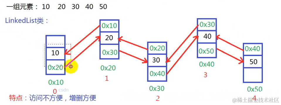 (它是没有下标,查找比较难,但是增删时不需要移动数据,只要用线连接起来即可)