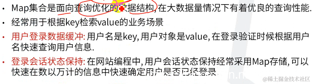 答:以前讲的集合都直接把值丢进去没有目录,Map提供key,目录有就查找,没有就不查找,也就是提高效率;