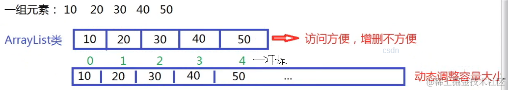 (它查询快是因为根据下标(索引)查找,但是要增删每次都需要移动数据,索引比较麻烦)
