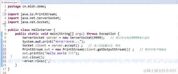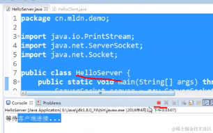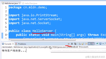 我们先运行服务端试试,程序一直在等待,没有执行完,就是进入一种阻塞状态: