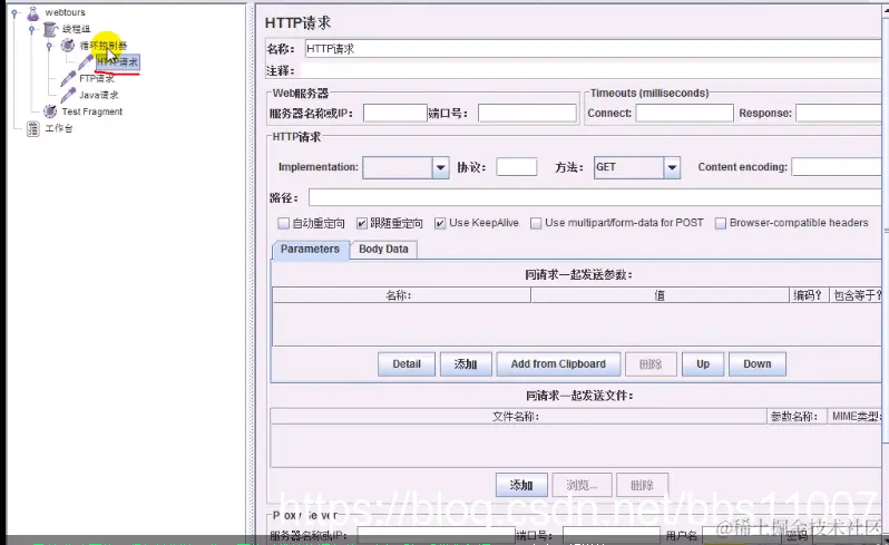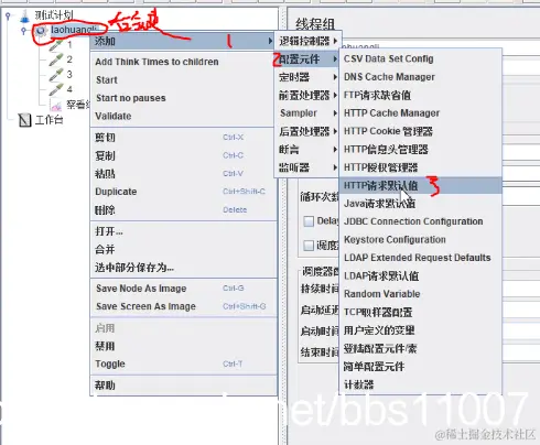 线程组右键--》添加--》配置元件--》Http默认值