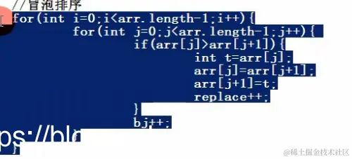 if(arr[j]>arr[j+1]){//一个值跟下一个值对比,这里演示从小到大冒泡排序,反之换<
