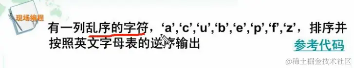 思路:先把这些杂乱的字符排列下,现在从小到大排列(升序),下标很定最小在前,逆序就把下标最大放前面