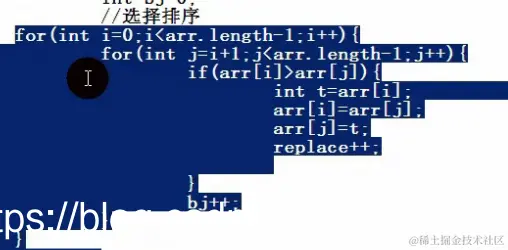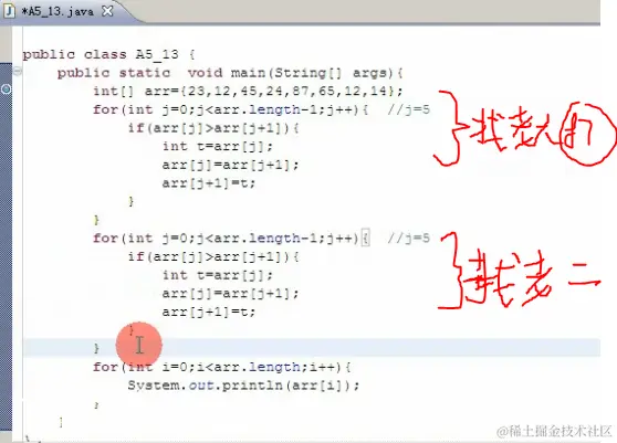 for(int j=j+1;j<arr.length-1;j++){//第一轮第一个擂主跟后面一个个的值比,