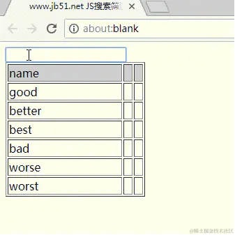 if(searchText.match(key)){//用match函数进行筛选,如果input的值,即变量 key的值为空,返回的是ture,