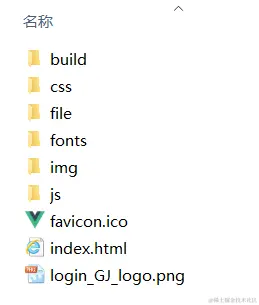 我们npm run build出来的dist就是这个文件夹,拷贝这个就行了,目录结构如上图,但是打开有问题,白茫茫一片,一般都是找不到资源文件。