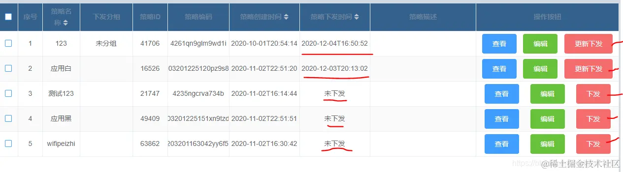 { prop: "enabletime", label: "策略下发时间", minWidth: 80, sortable: true },