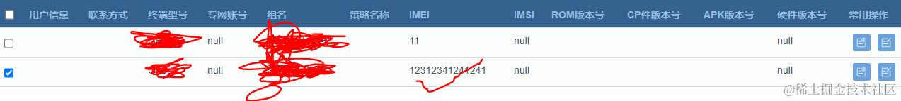 比如你要获取选中的这行的IMEI号: