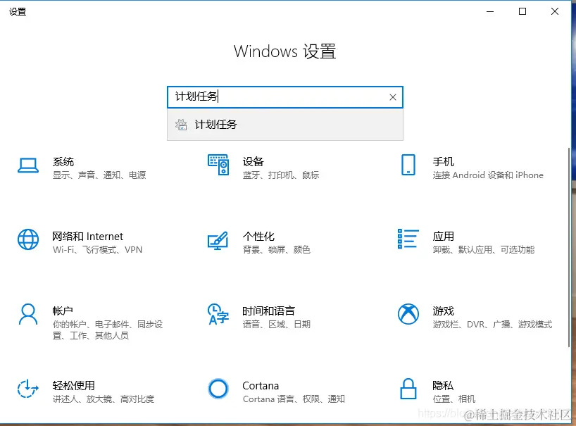 我们电脑自带的计划功能,以win10为例,我打开计划的方式,windowns键--》设置--》如下图