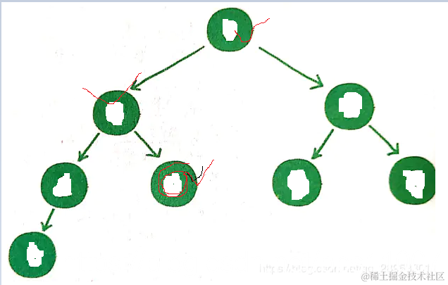 再根据上面的游玩地图,我们从最底部开始,所以深度不一定是指向下延伸,还可以向上延伸,那我们从4开始,为什么从4开始?就是访问根节点的左孩子,如果这个用于做孩子的也拥有左孩子这就不算(比如2),我们这么理解,拥有左孩的地方门票太贵或者不好玩,我们先从最好玩的开始,然后在回去玩这些,左边左孩子没有拥有左孩的只能是4.其他的不符合。所以知道怎么找了吧,最简单的就是左边的最底。
