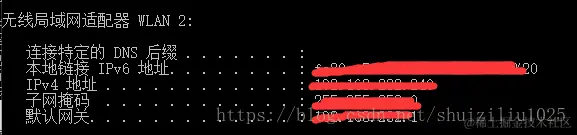电脑和手机连接同一个网络,确保在一个局域网。电脑端(cmd-ipconfig)查看电脑的ip地址: