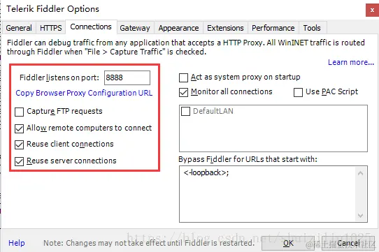 打开fiddler工具->Tools->Fiddler Options,记住下面的端口号;