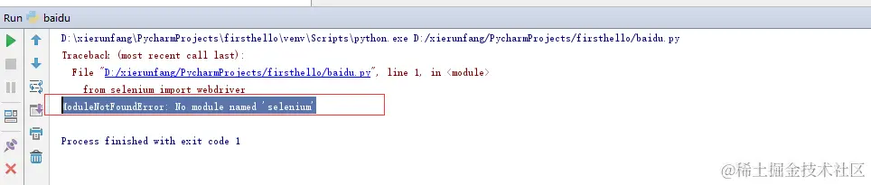 在pycharm上搭建python+selenium自动化测试环境时,遇到一个很坑的问题:no moduel named ‘selenium’