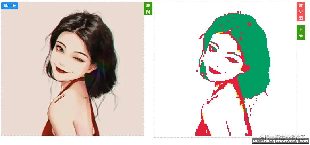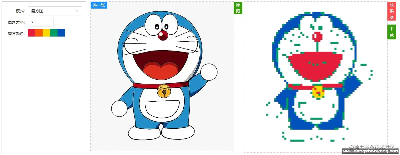 与上面制作魔方图的原理相同,去掉颜色转换的步骤,可以直接取每个小方块的左上角或中间的像素颜色作为小方块的颜色。