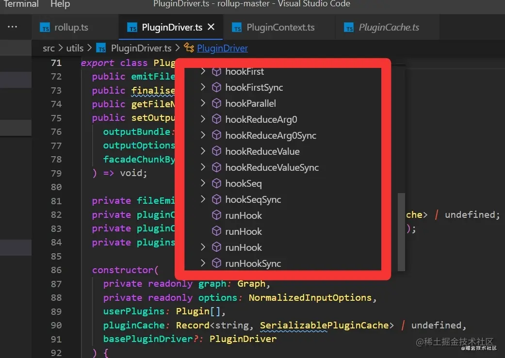 首先还是要了解必备的前置知识,大致浏览下 rollup 中处理 plugin 的方法,基本可以定位到 PluginContext.ts(上下文相关)、PluginDriver.ts(驱动相关)、PluginCache.ts(缓存相关)和 PluginUtils.ts(警告错误异常处理)等文件,其中最关键的就在 PluginDriver.ts 中了。