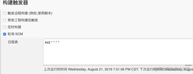 轮询构建(我用的是每两分钟检查一次代码有变动构建一次)