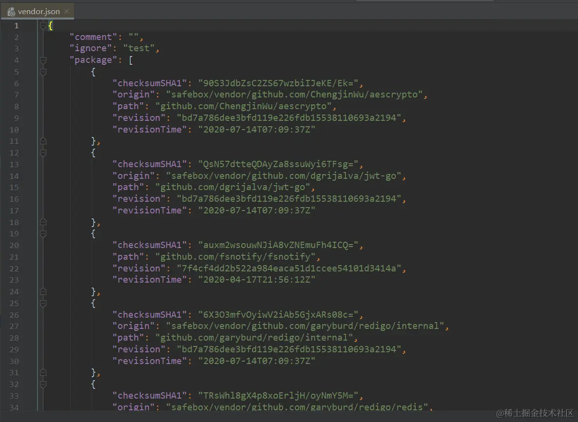 然后发现vendor.json文件里加了很多依赖包的信息,同时vendor目录下把所需要的依赖包导进来了。