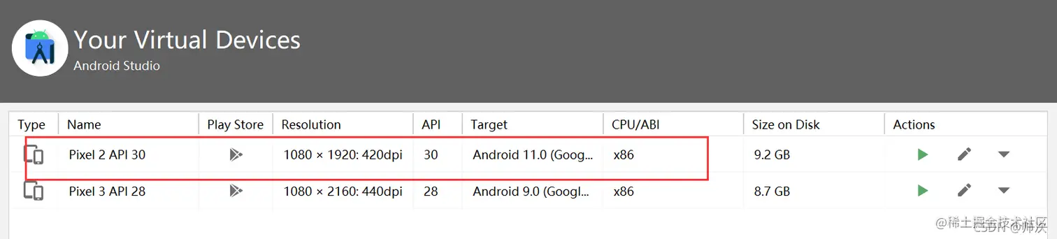 3、清除模拟器的数据解决了这个问题,然后重新启动模拟器 。 4、AVD卸载重装,并重启Android Studio。 5、版本过高,降级模拟器版本。 6、检查是否含有中文。 亲测SDK 30可正常运行
