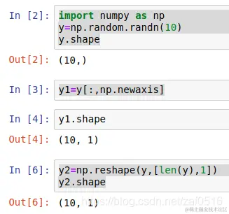 这个可以用于扩展一个新的维度,例如假设我们的标签y.shape=(10,) ,我们想把它变成**(10,1)**该怎么做?很简单: