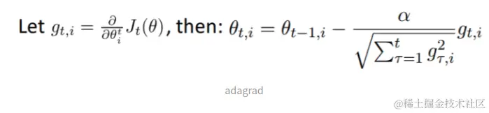简要说明一下 ,Adagrad非常适合数据出现频度不一样的模型,比如word2vec,你肯定希望出现非常少的词语权重更新非常大,让它们远离常规词,学习到向量空间中距离度量的意义,出现非常多的词(the,very,often)每次更新比较小。