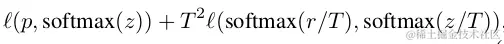 其中p表示真实标签,z表示student model的全连接层输出,r表示teacher model的全连接层输出,T是超参数,用来平滑softmax函数的输出。