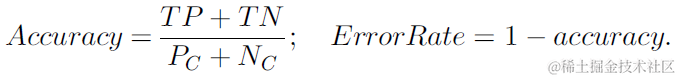 正确率(Accuracy)和F值的计算如下式所示。可见正确率或错误率并不能表示不平衡数据下模型的表现,对于不平衡数据即使全部预测为多数类也可以达到较高的正确率较低的错误率,而F值同时考虑到了少数类的准确率和召回率,因此能衡量不平衡数据下模型的表现,其中ββ取值通常为1。