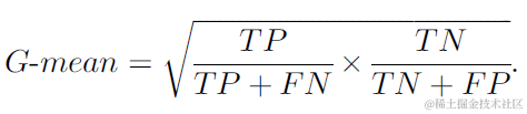 G-Mean是另外一个指标,也能评价不平衡数据的模型表现,其计算公式如下。