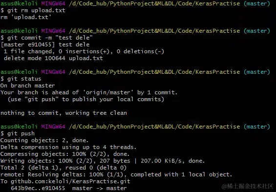 git push -u origin master将本地项目的master分支推送到github上,这样就完成了本地项目和github对应项目同步的工作 - 另外,