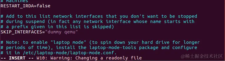 提示我们在/etc/laptop-mode/laptop-mode.conf 中进行配置