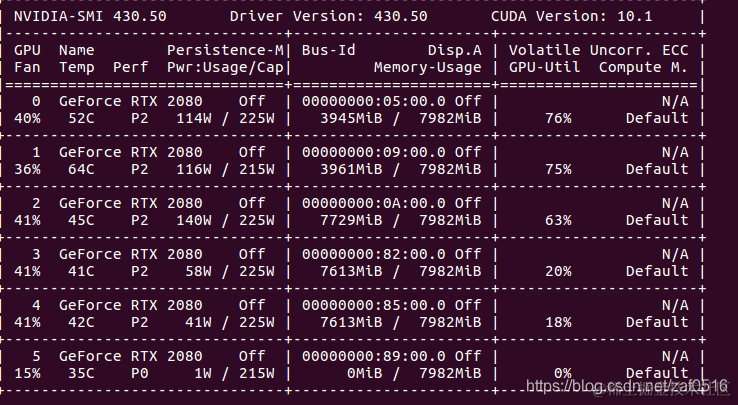 在通过nvidia-smi查看的时候,一般多个gpu的资源都被占满,但是只有一个gpu的GPU-Util