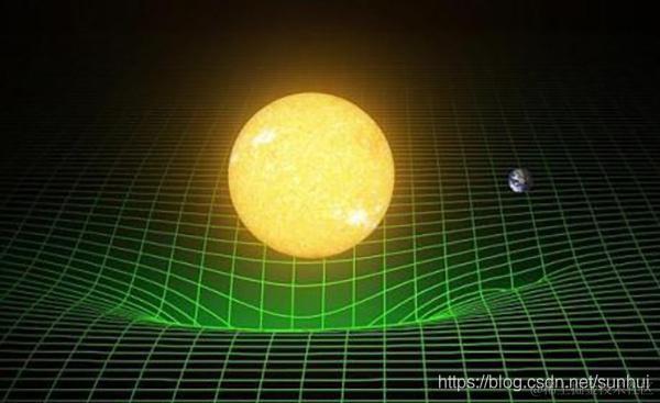 (爱因斯坦认为:大质量天体“扭曲”了其周围的空间,进而形成了其他物体环绕其旋转的“几何轨道”,这种几何的观点,奠定了现代物理学的基础)