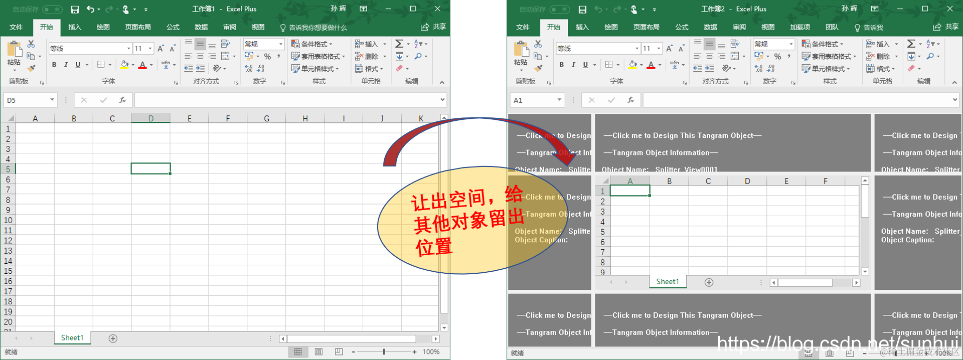 (Excel Workbook中心区域呈现的网格化结构,每个“格子”有待于填充新的对象)