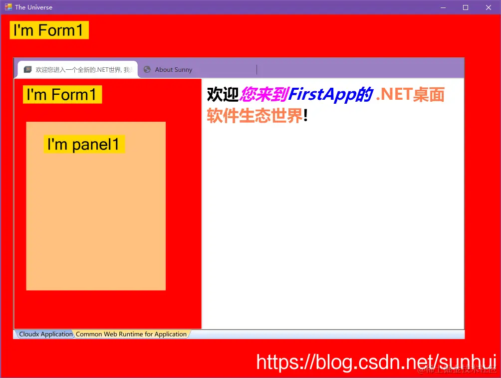这里,”objid="FirstApp.Form1,host"“,导致FirstApp内部的Form1成为运行时Form1的”一部分“,如下图: