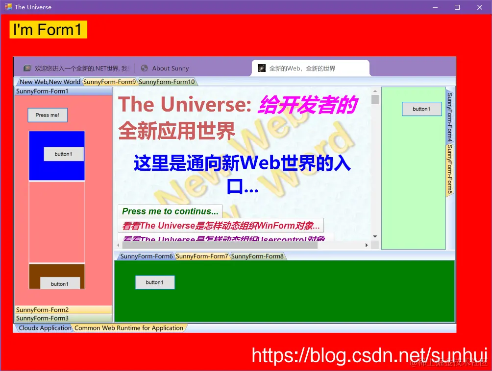 (Form窗体之上出现了标签化浏览器结构,就是说浏览器这里是子窗口,是Form的一部分)