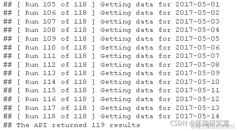 从 Google Analytics API 查询博客用户的每日时间序列数据。下面是设置我想要的参数的初始查询。在这个例子中,我只是从 2017 年 1 月中旬到 2017 年 5 月中旬每天拉博客的用户数据。