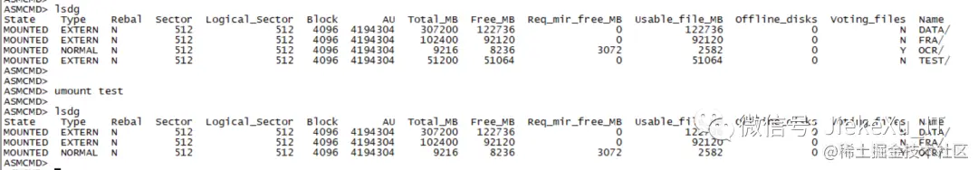 asmcmd umount test