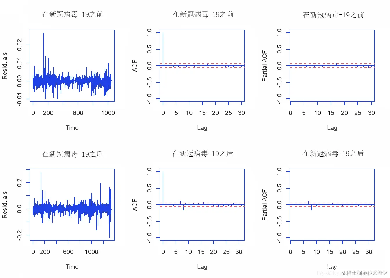获得模型后,我们将对每个拟合模型执行残差诊断。