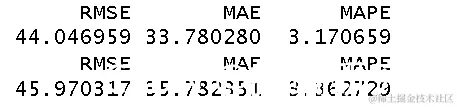 现在,我们使用参数诸如RMSE(均方根误差),MAE(均值绝对误差)和MAPE(均值绝对百分比误差) 对所有三个模型进行分析 。