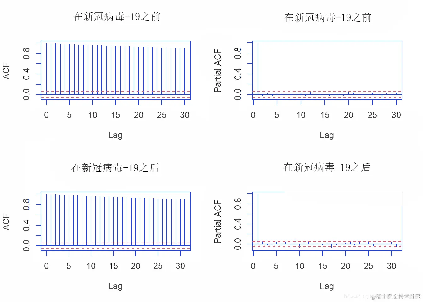 我们首先分析两个数据集的ACF和PACF图。
