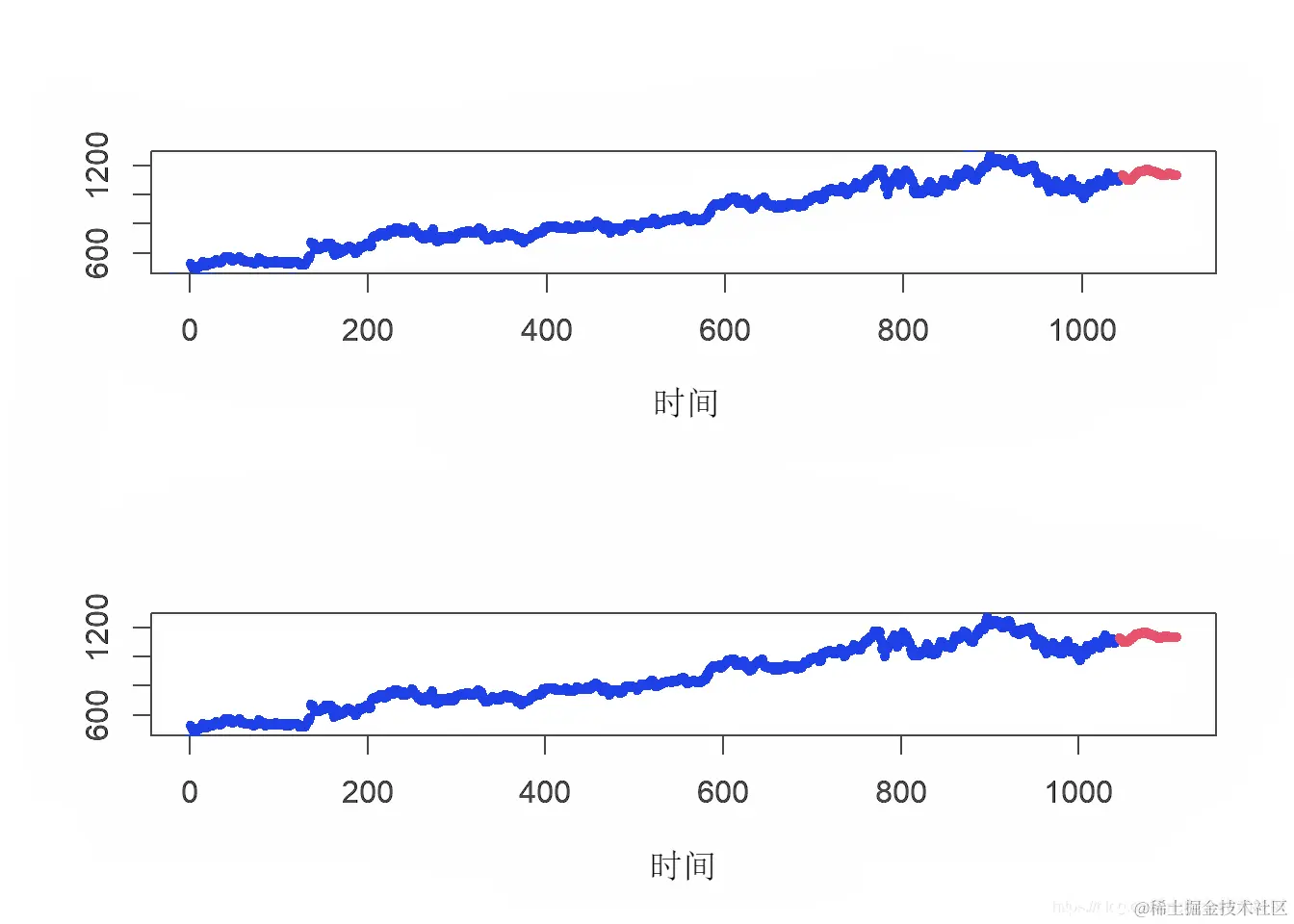 因此,我们可以从以上两个检验得出结论,时间序列数据 不是平稳的。