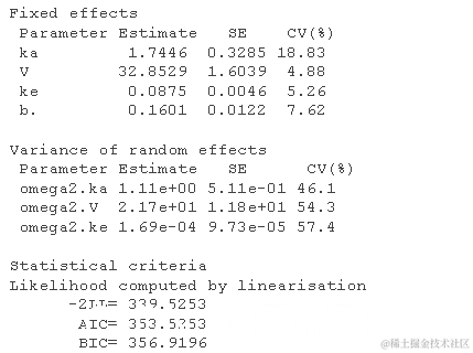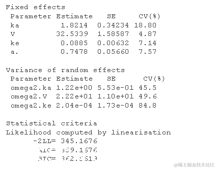 可以定义几个选择和运行算法的选项,包括单个参数的估计 (map=TRUE)、Fisher 信息矩阵的估计和线性化对数似然 (fim=TRUE) 或重要性采样的对数似然(ll.is=TRUE)。
