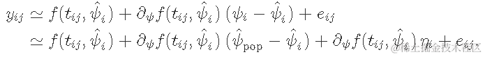 实际上,我们可以将个体 i的观测值 (yij,1≤j≤ni)的模型线性化,该模型围绕预测的个体参数 ψ^i 的向量。