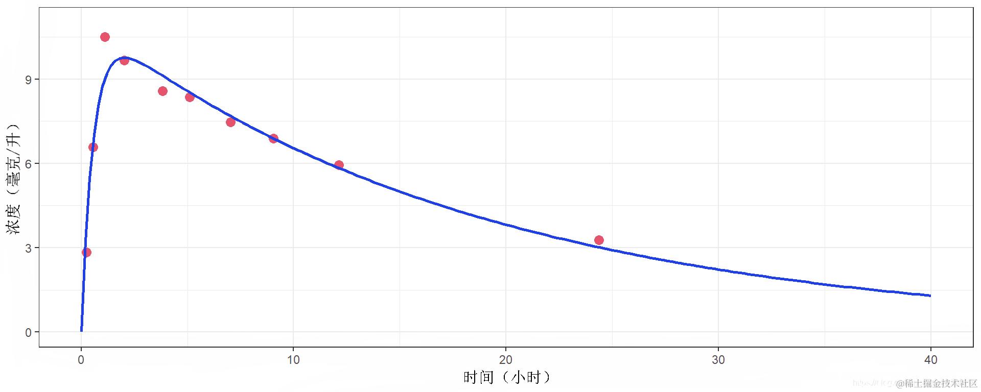 让我们看看如何将我们的模型拟合到茶碱数据。