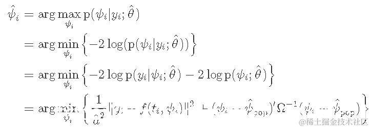 一旦θ被估计出来,条件分布p(ψi|yi;θ^)就可以用于每个个体i来估计个体参数向量ψi。