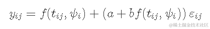 在模型 yij=f(tij,ψi)+eij 中,假设残差 (eij)是均值为 0 的高斯随机变量。 (eij)在非线性混合效应模型中的方差。
