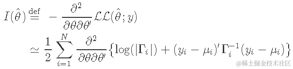使用线性化模型,最大似然估计 (MLE) θ^ 的方差以及置信区间可以从观察到的 Fisher 信息矩阵 (FIM) 中导出,而 FIM 本身是从观察到的似然导出的: