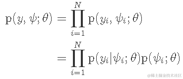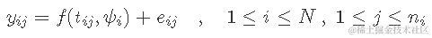 模型是(y,ψ)的联合概率分布,其中y=(yij,1≤i≤N,1≤j≤ni)是完整的观测集,ψ=(ψi,1≤i≤N) 单个参数的 N向量,