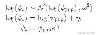 备注: 这个正态性假设允许我们将每个单独的参数 ψi 分解为固定效应 ψpop 和随机效应 ηi: