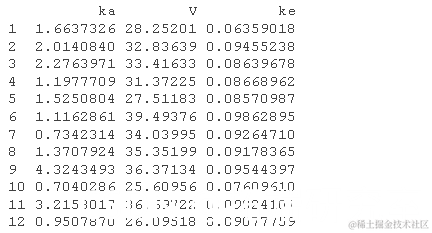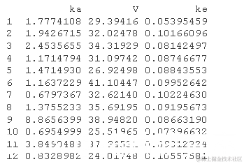 例如,如果我们想使用 V 的正态分布和 ka 和 ke 的对数正态分布,那么 par 应该是向量 c(1,0,1):